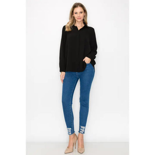 WANDA WOVEN CREPE TOP - BLACK
