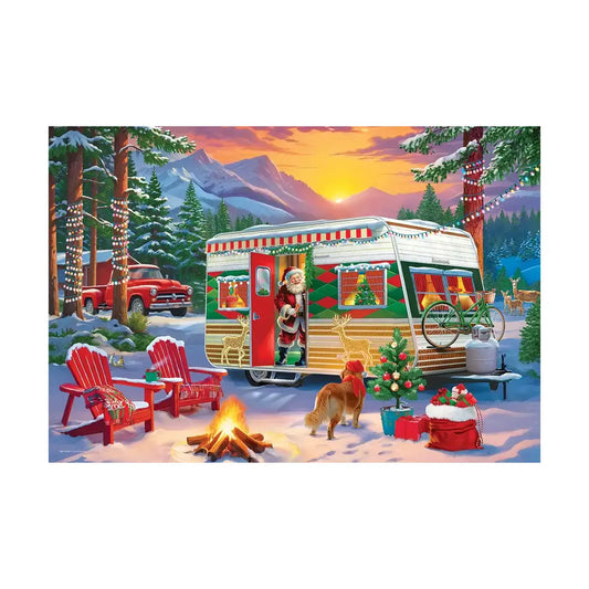 CHRISTMAS CAMPING TRAILER TIN PUZZLE