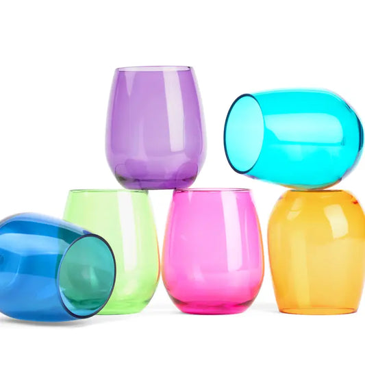ACRYLIC STEMLESS WINE GLASSES - JEWEL COLORS