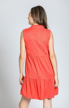 HOT CORAL - TENCEL SLEEVELESS DRESS