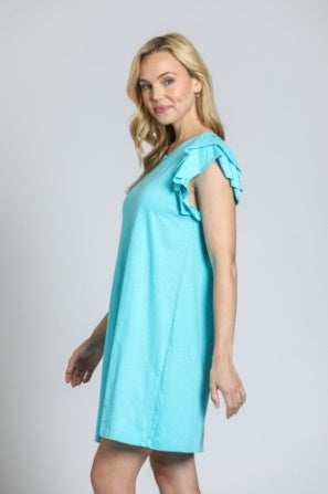 DOUBLE RUFFLE SLEEVE CASUAL DRESS - CAPRI BLUE
