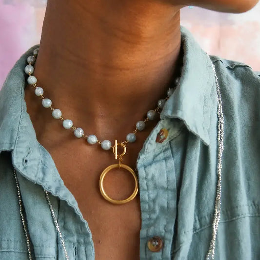 MACAROON ADJUSTABLE NECKLACE IN CHOCOLATE MOONSTONE