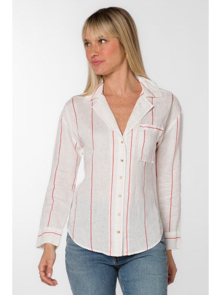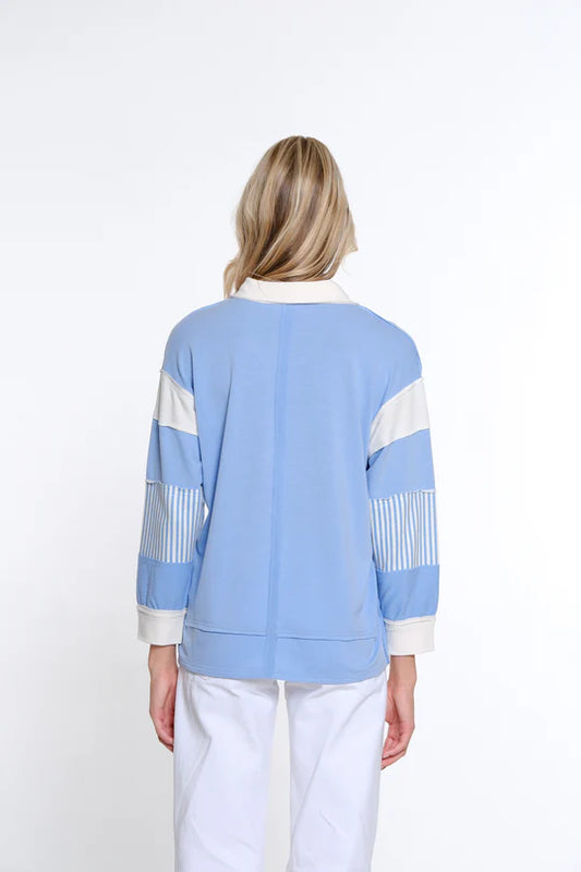 TURN-UP CUFF BUTTON FRONT BLOUSE - BLUE