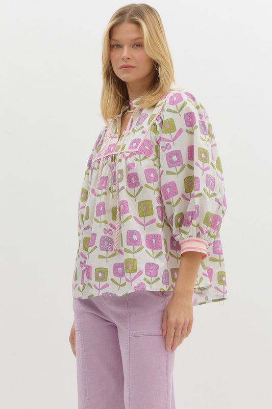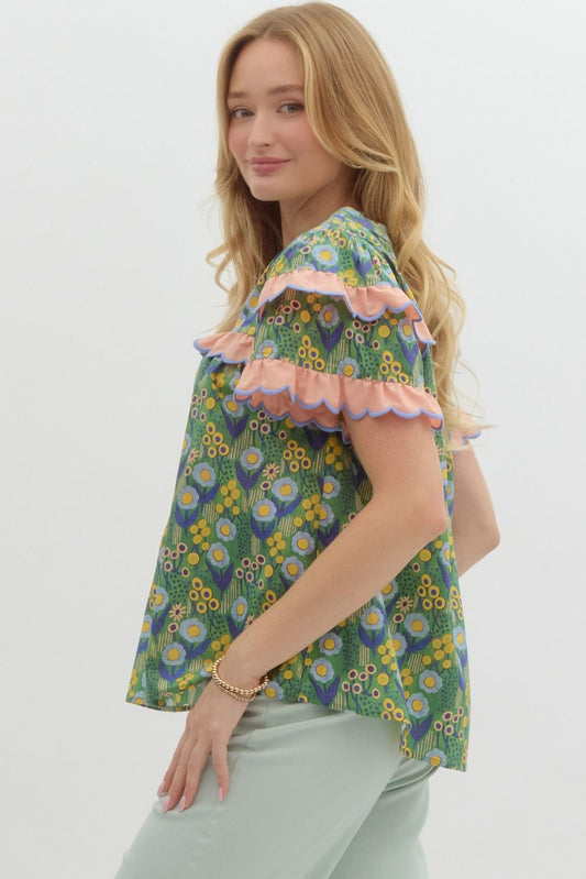 SHORT SLEEVE BRIGHT FLOWER SWEATER