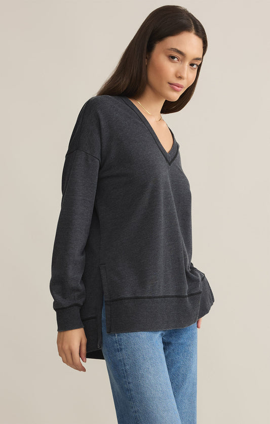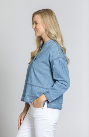 BLUE MARBLE PRINT V-NECK TIE FRONT TOP