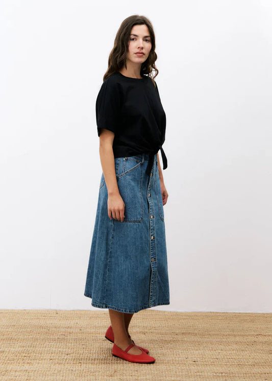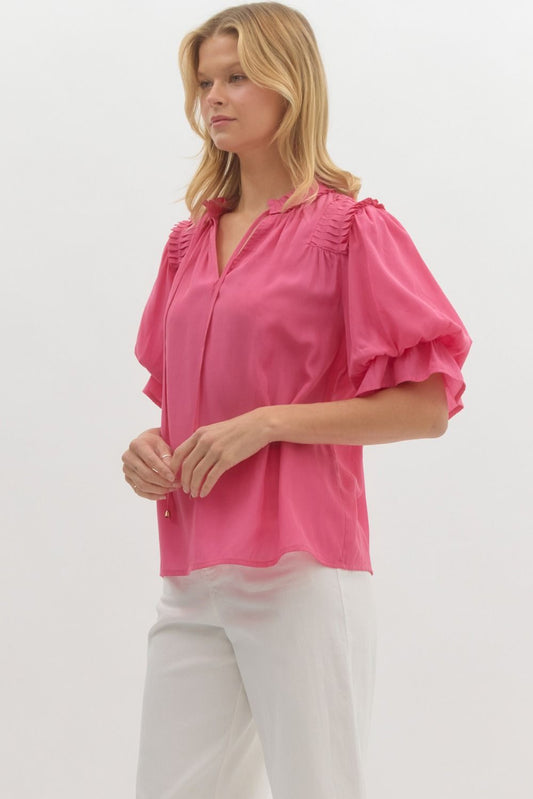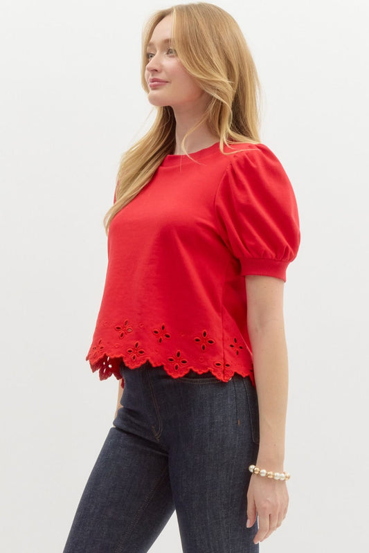 SHORT SLEEVE EMBROIDERED HEM TOP - RED