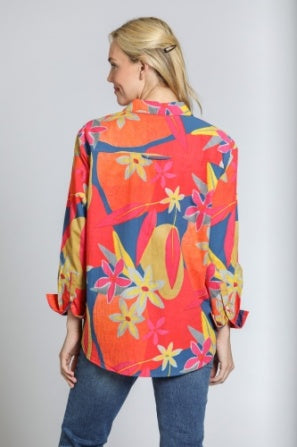 BRIGHT ORANGE FLORAL BOYFRIEND TOP