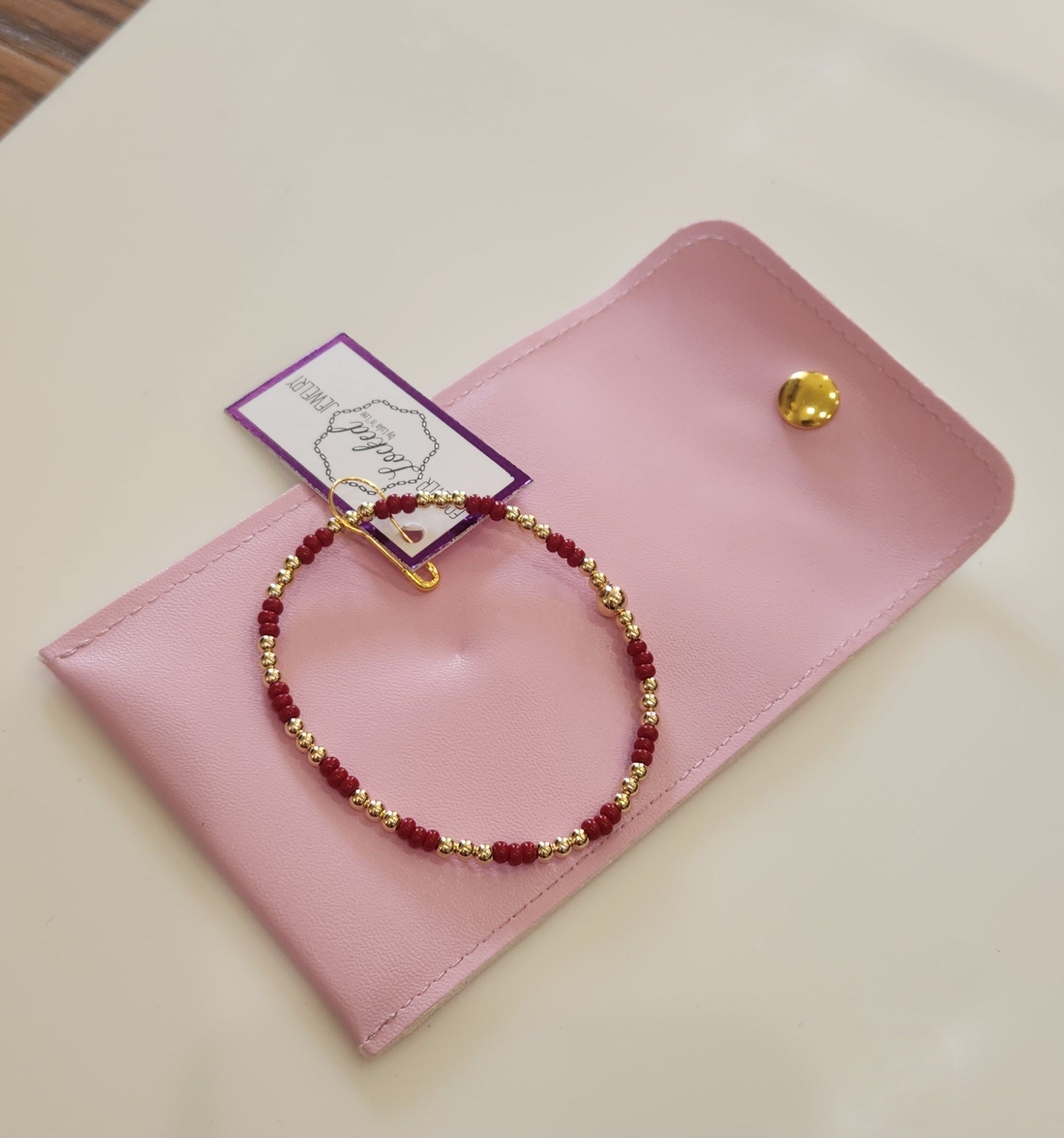 This classic 3mm 14k gold-filled beaded bracelet features vibrant Preciosa Ornela Crimson Czech glass beads, expertly hand-beaded in Houston, Texas. Measuring 6.75 inches, it’s designed for everyday wear—whether you sweat, swim, shower, or sleep—offering durability without compromising elegance. Perfect for stacking or wearing solo, this bracelet combines timeless style with lasting quality.