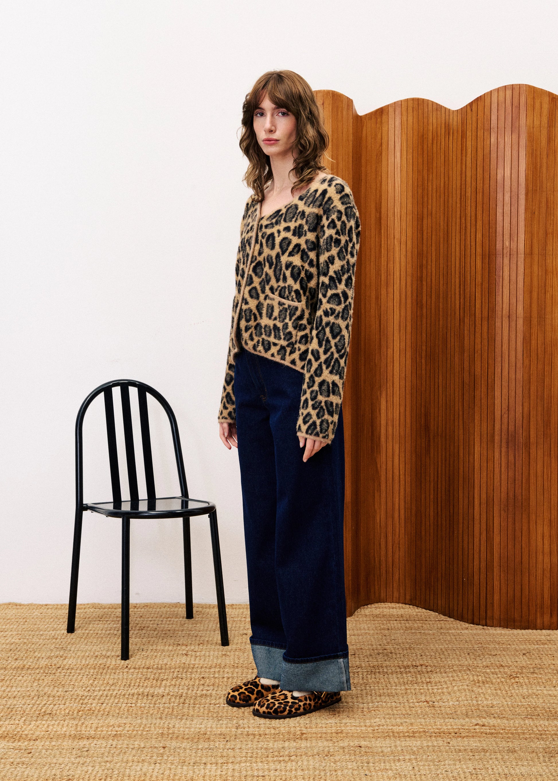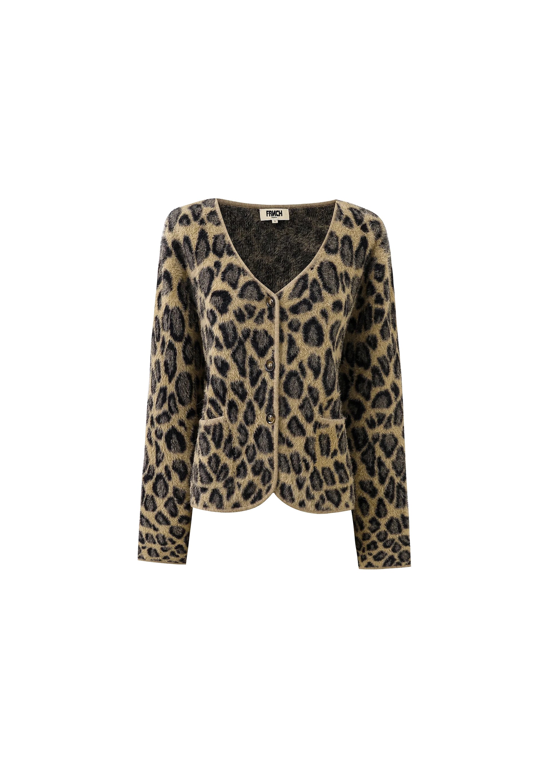 The Begonia Cardigan features a short, straight cut with a round neckline and button closure for a classic fit. Crafted from a soft mohair-effect knit, it offers cozy warmth and a luxurious feel. Its all-over leopard print adds a bold, stylish edge, while two patch pockets provide practical storage. This cardigan combines comfort and statement-making design, perfect for elevating your wardrobe with expert flair.