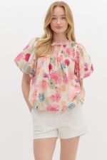 BUBBLE SLEEVE FLORAL PRINT TOP