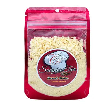 Quick and easy "Soup for Two" is designed to provide a tasty home cooked meal, without the burden of leftovers! Directions: add 3 cups of water and contents of the package to a medium sauce pan. Heat until boiling reduce heat and simmer until the onions are tender. Serve Warm. To make trench onion soup, divide the soup into two openable crocks, add toasted croutons and top with gruyere cheese. Broil until the cheese is golden brown. Contains: Soy, Wheat