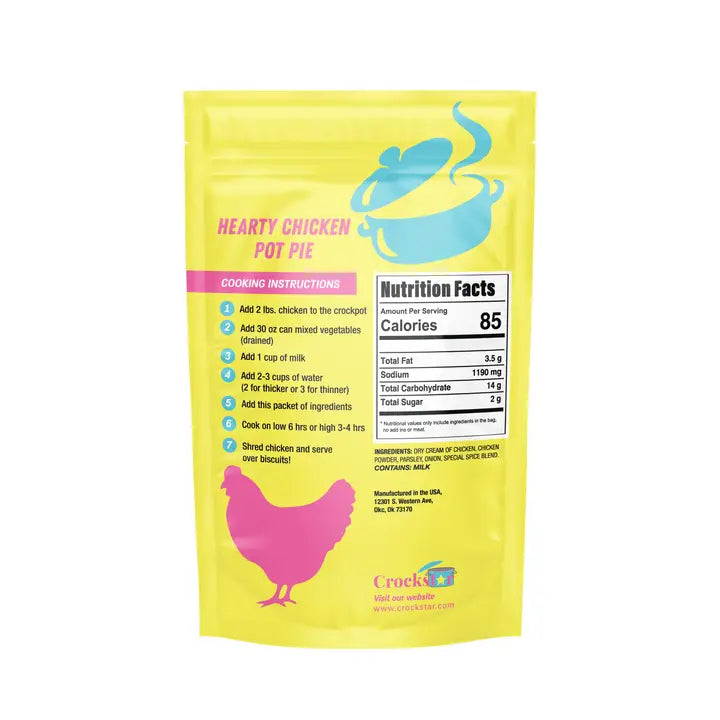 Crockstar's Hearty Chicken Pot Pie creates a creamy sauce blend of veggies and chicken. This meal is best served over biscuits or even baked in a pie shell.