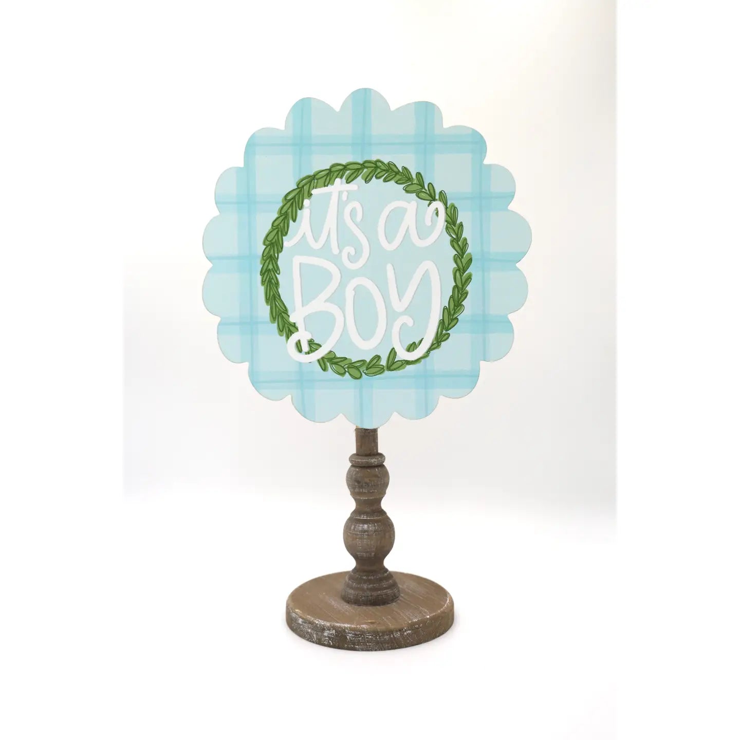 Add a splash of joy to your celebration with the IT'S A BOY TOPPER! Made from smooth, durable 1/4 inch MDF and featuring bright, detailed UV printing, this single-sided topper brings playful charm to any party setup. It pairs perfectly with our bases to create a delightful centerpiece that announces your happy news with style.