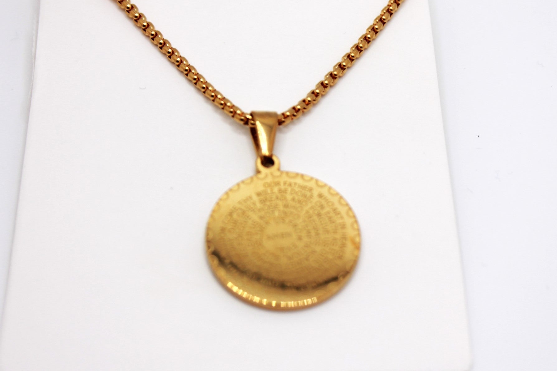 Carry a reminder of faith with the Lords Prayer Medallion Necklace. Its charming design adds a fun and meaningful touch to any outfit, making it a perfect accessory to brighten your day with style and spirit.
