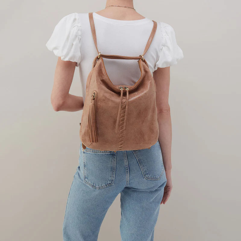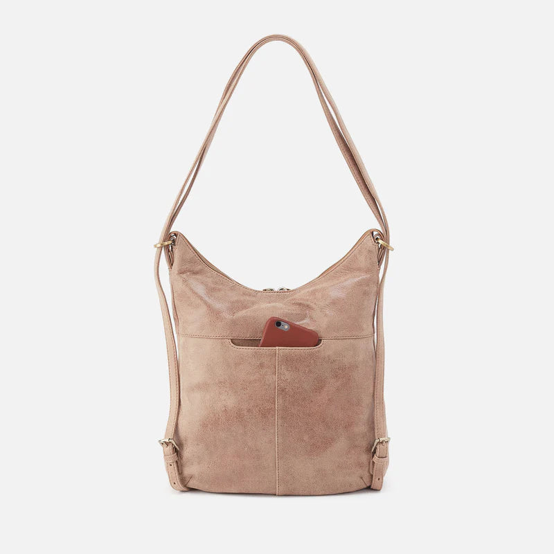 A convertible backpack that easily switches to a shoulder bag for those real-life quick-change moments.