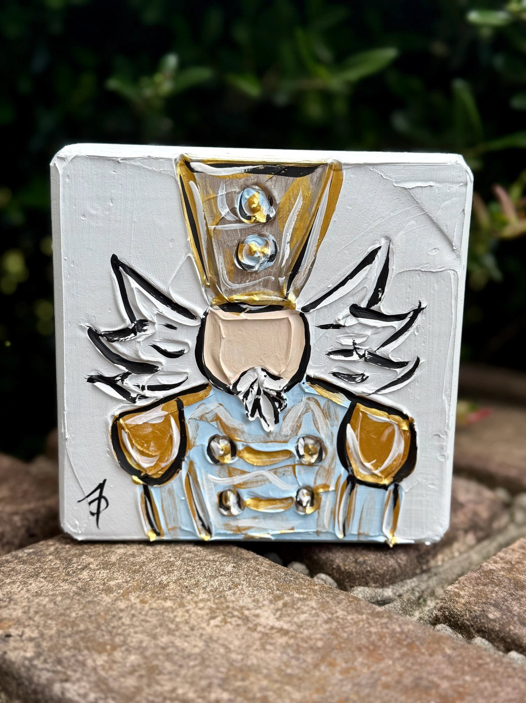 Make your Christmas decor more festive with these handmade textured nutcracker wood art blocks. Each piece is hand painted so there are no two exactly alike. The texture gives added depth and dimension and the metallic gold highlights make each piece stand out.