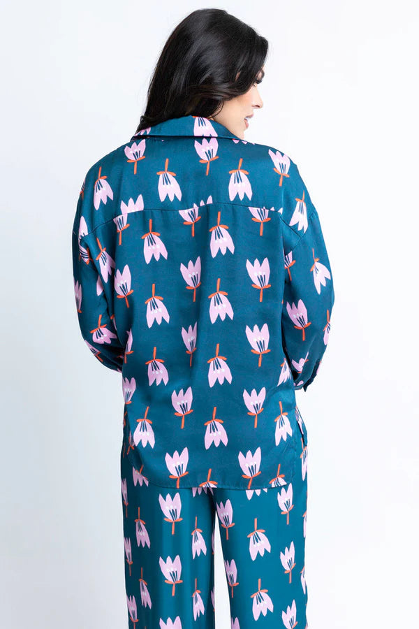 This Poppy Satin Button Up Top features a vibrant poppy print and convenient front pocket. Its button up design and long sleeves make it both stylish and practical for any occasion. Elevate your wardrobe with this must-have top.
