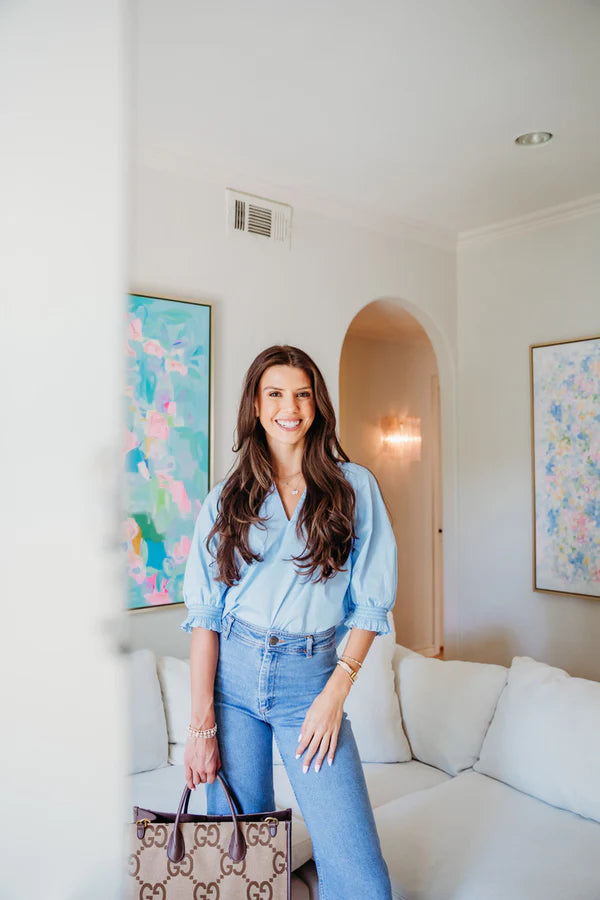 Elevate your everyday style with this charming blue v-neck top! The playful puff sleeves add a touch of whimsy to this versatile piece, while the flattering V-neckline frames your face beautifully. Perfect for pairing with your favorite jeans or tucking into a skirt for a more polished look. This top brings fun to function!
